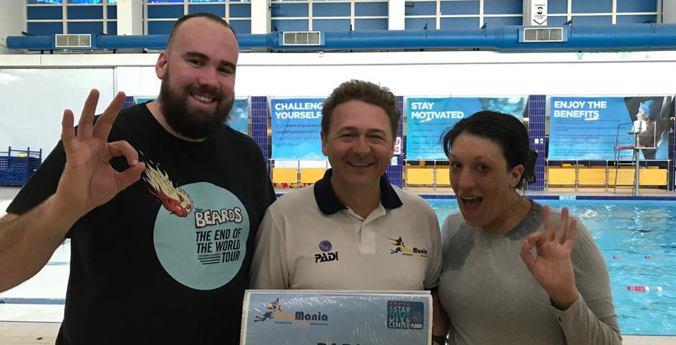 Ashleigh, Michael, Scott, Becci and Steve on completing the Confined Open Water element of the PADI Open Water Course and to Michael on completing the course while on holiday.